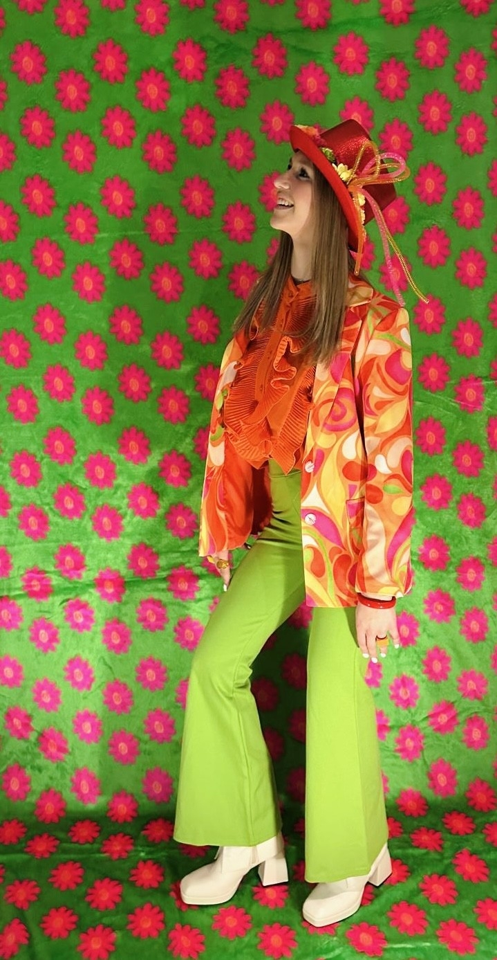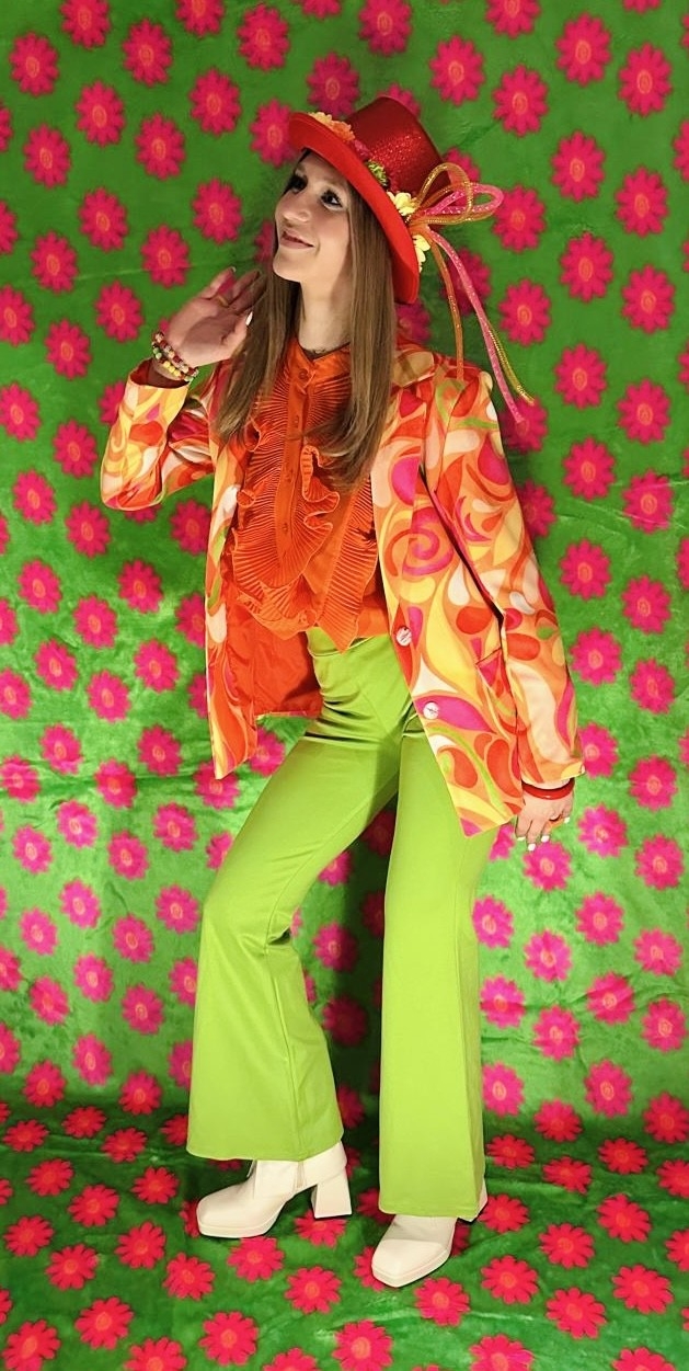 Breng kleur en energie in je outfit met de Blazer Mila Multicolor van Atelier de Mila! Dit opvallende jasje valt direct op door de levendige kleuren oranje, rood, geel en roze, waardoor het een perfecte keuze is voor carnaval, themafeesten, creatieve werklooks of modieuze dagelijkse outfits. Op de productfoto is de blazer gecombineerd met een oranje blouse en groene flared pants, wat zorgt voor een speelse, opvallende en kleurrijke outfit die helemaal klaar is voor een vrolijk carnavals- of themafeest. De blazer is eenvoudig te combineren met felle kleurtjes voor een speelse uitstraling, maar staat ook prachtig met wit voor een frisse en stijlvolle look.