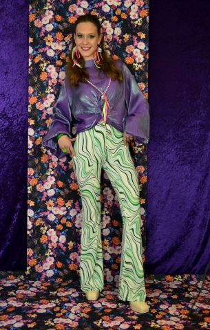 Blouse Luza paars is een blouse van het merk Luzabelle Paris. Het is een cropped blouse met puffy mouwen met manchette. De draai onderaan in de blinkende stof geeft de blouse een speelse twist. Niet alleen leuk voor een thema-avond, zoals disco of flower power. Ook superleuk voor festival of feest.