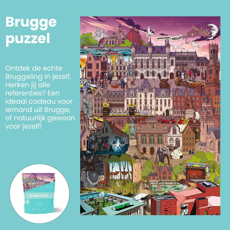 Ontdek Brugge in al z'n pracht en praal! Ga op zoek naar alle bekende Bruggelingen of zoek je weg tussen alle trekpleisters. Van de historische binnenstad tot de Brugse Zwaan, je vindt ze allemaal terug op deze mooie puzzel.