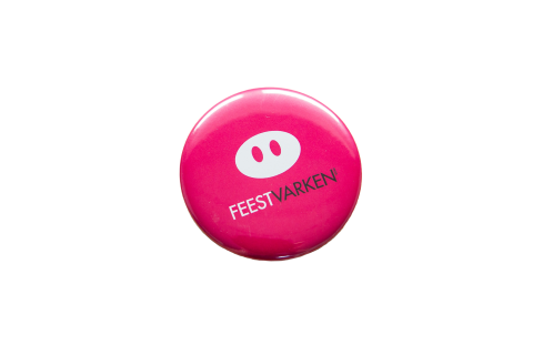 Zet het feestvarken een hele dag in de kijker met deze leuke button.