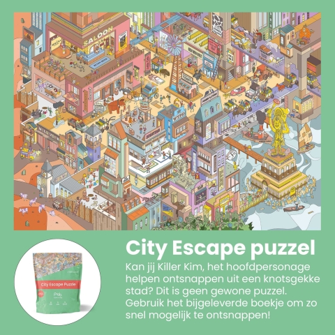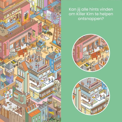 Een interactieve puzzel waarbij je uit een stad moet ontsnappen. Kan jij Killer Kim hierbij helpen?