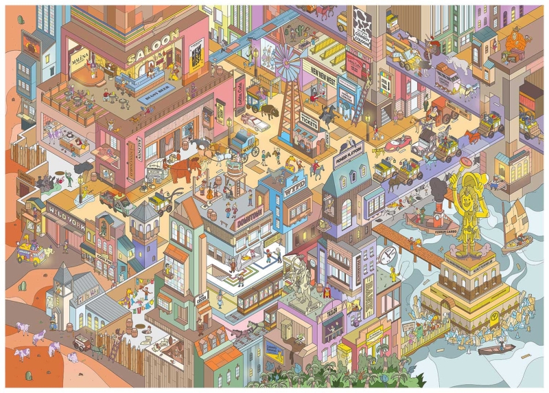 Spellmakers hebben zichzelf overtroffen bij het ontwerpen van deze puzzel. Een doorsnede van een stad vol gekke figuren en uitgangen. Kan jij het aan?