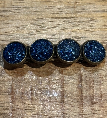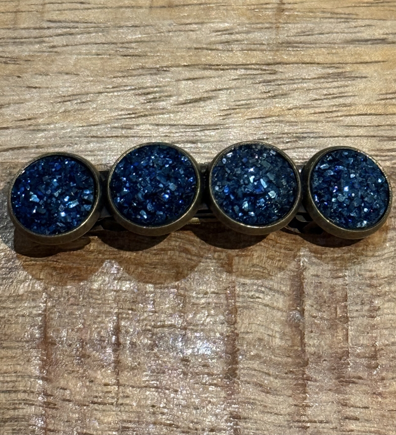 Steel de show met deze prachtige speld in je haren! Handgemaakt Materiaal: Nikkelvrij Kleur: Blauw met glitters Lengte: 5 cm Breedte: 1.4 cm