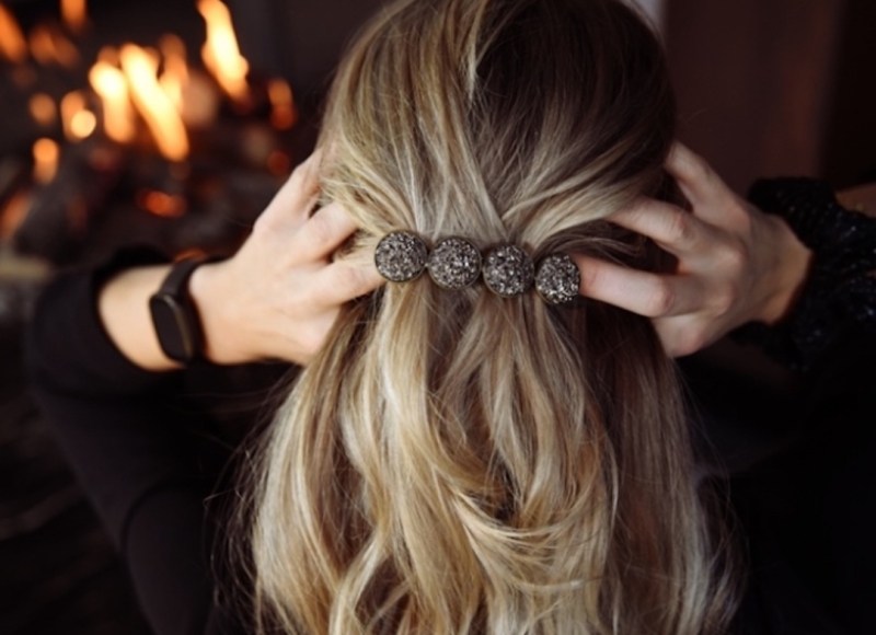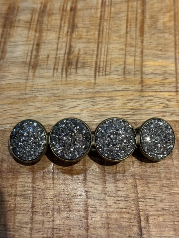 Handgemaakt Materiaal: Nikkelvrij metaal Kleur: Donkergrijs met glitter Lengte: 7 cm Breedte: 1.2 cm