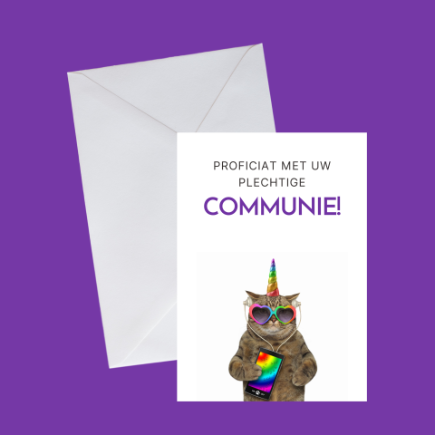 Kaartje voor communie met poes
