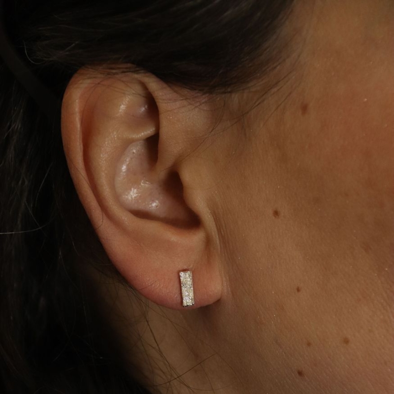 Zilveren oorstekers met een houtstructuur.