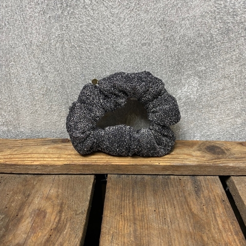 Handgemaakt Model: Scrunchie original Materiaal: Lurex Kleur: Grijs, beige met glitters Omtrek: 12 cm