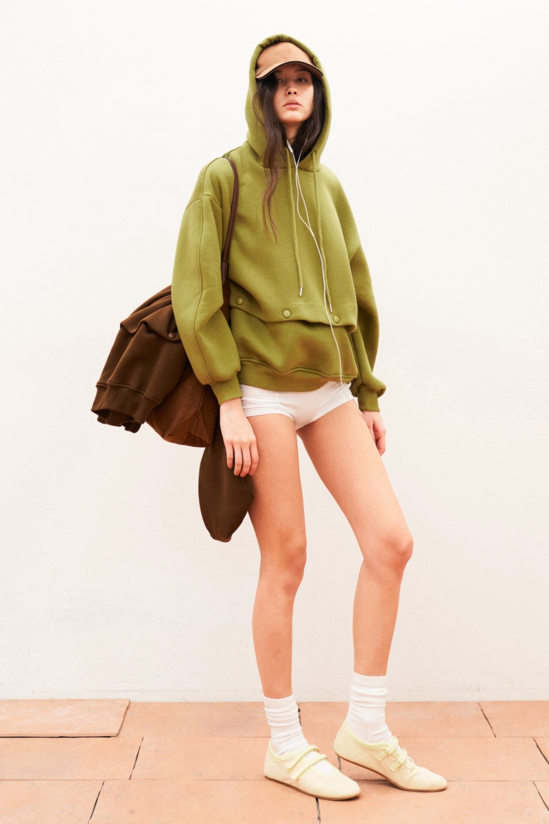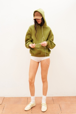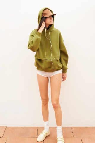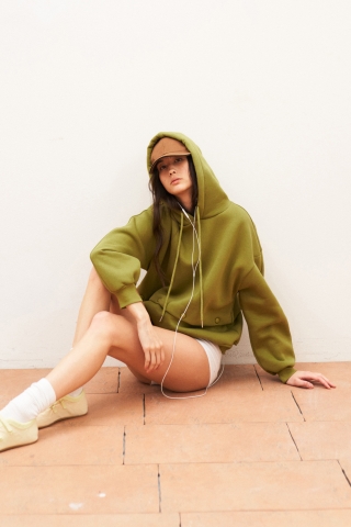 De olijfgroene Hoodie is vervaardigd uit hoogwaardige materialen: