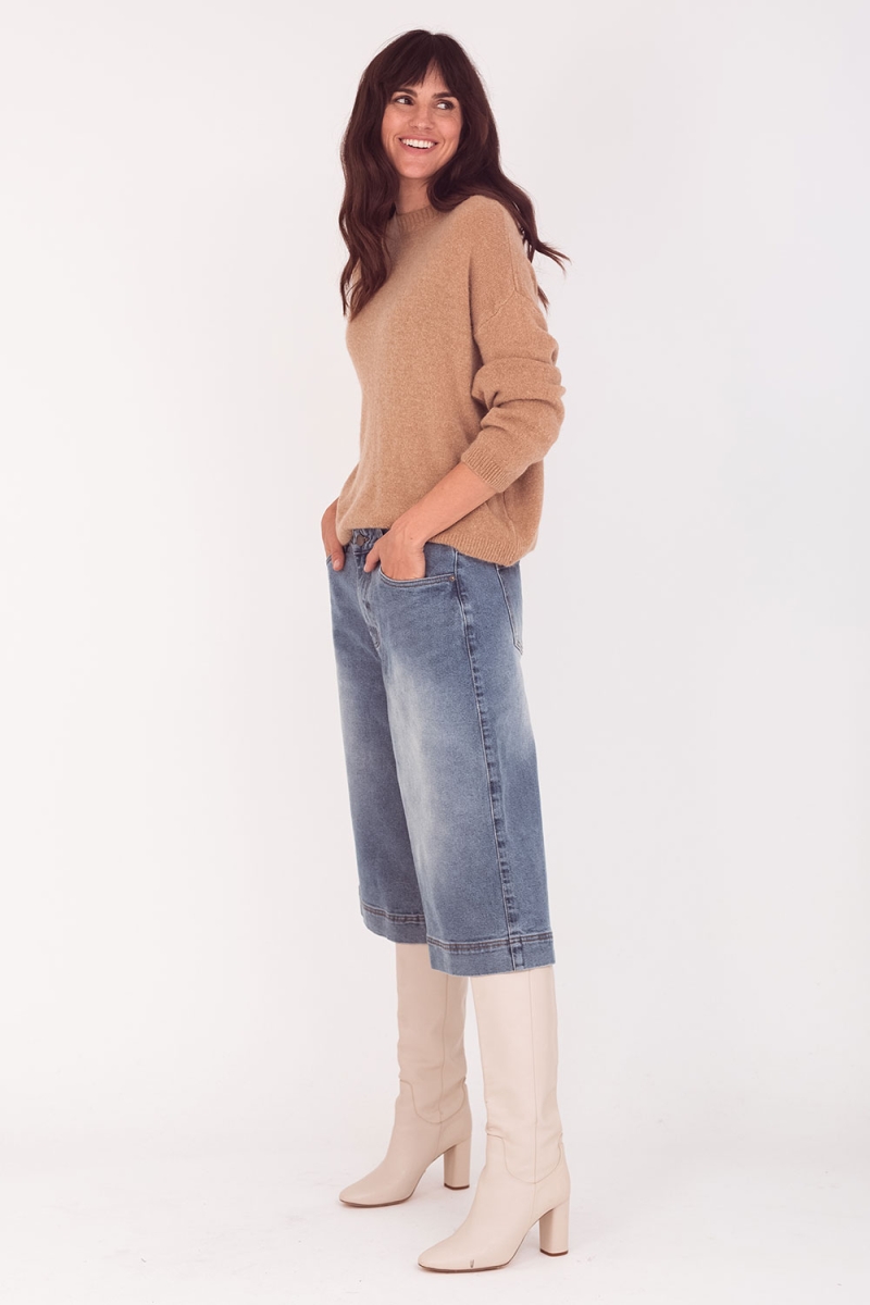 Jeans Toke oversized is een bermuda van het merk Toxik3 uit Parijs. Het is een nostalgische rekbare jeans net over de knieën, goed ruim. Broek is uitgerust met twee insteekzakken en twee zakken achteraan.