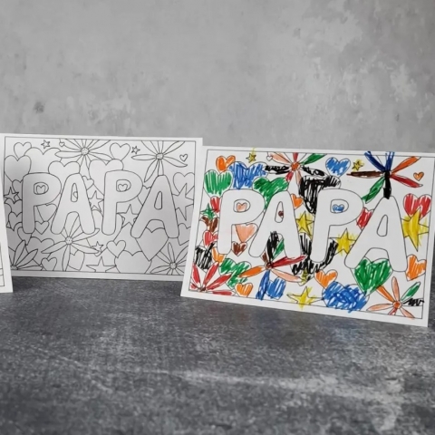 Hoe leuk is dit, een kaart die je nog zelf aan inkleuren! Wat zal papa fier zijn als hij dit krijgt.