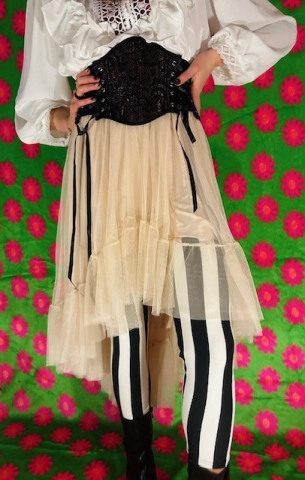 De legging is vervaardigd uit 95% polyester en 5% spantex, wat zorgt voor een duurzame en flexibele stof die prettig aanvoelt op de huid. Dankzij de vier verschillende maten (S, M, L en XL) kan bijna iedereen een perfecte pasvorm vinden. De combinatie van zwart en wit geeft de legging een stoere en opvallende uitstraling die eenvoudig te combineren is met andere Steampunk- of gothic-accessoires, zoals corsetten, jurken, laarzen of jasjes.