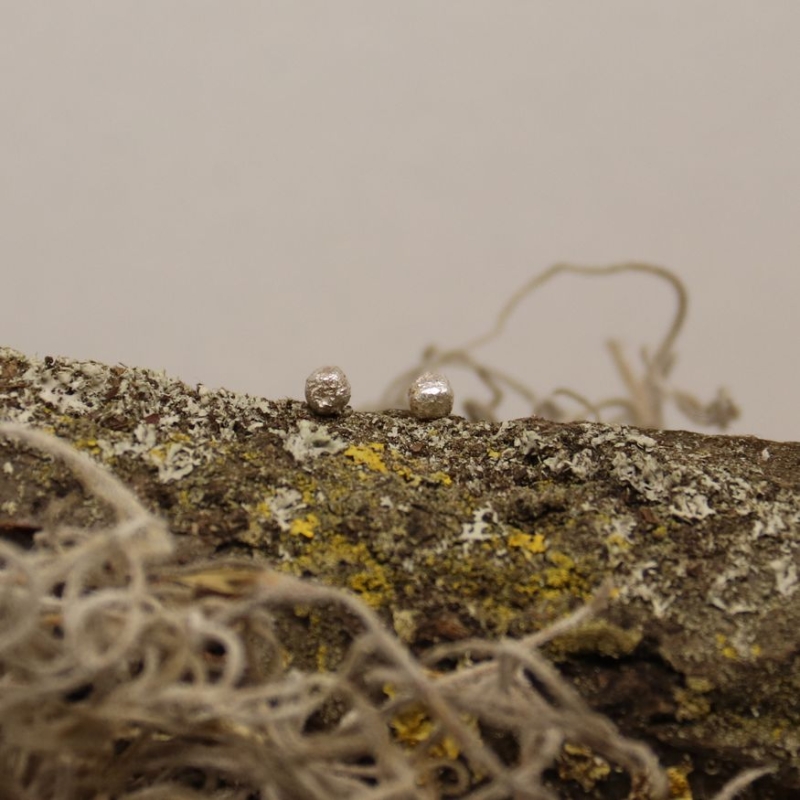 Deze leuke studs zijn ideaal als 2de oorbel. Willekeurig gesmolten balletje zilver.