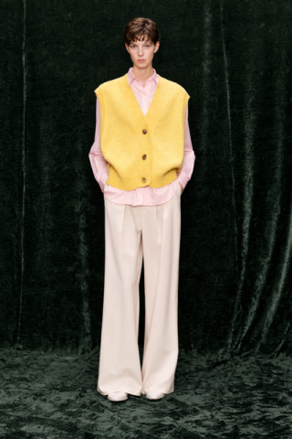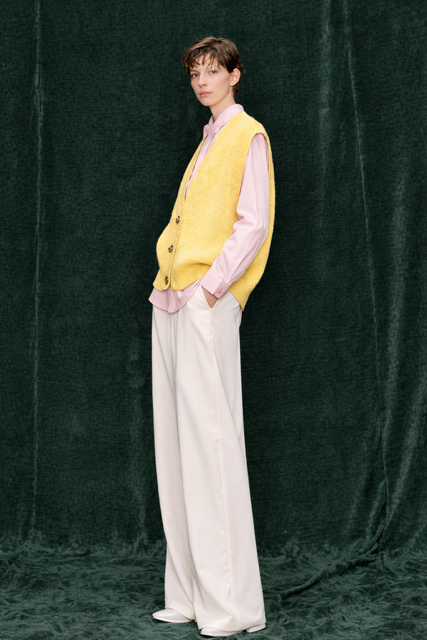 De warme gele kleur geeft het vest een zachte, vrouwelijke uitstraling en maakt het eenvoudig te combineren met een blouse, top of jurk.
