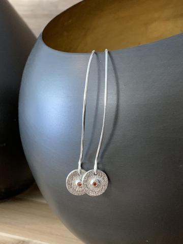 Handgemaakte oorbellen met lange oorhaken en oranjekleurige zirconia