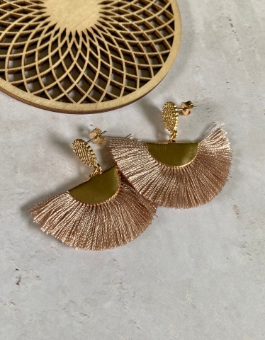 Speelse waaiertjes uit brass metaal en katoen aan een goudkleurige, nikkelvrije oorsteker.