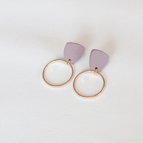Handgemaakte oorbellen van Studio Nok Nok. Totale lengte: 3,6 cm Totale breedte: 2,2 cm Materiaal: Gold plated, nikkelvrije messing Hout: Upcycled hout