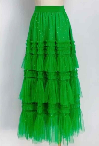 Kortom, de Rok Mochy groen is een veelzijdige, kleurrijke en sprankelende toevoeging aan je garderobe. Of je nu feestviert tijdens carnaval, verkleedpartijtjes bijwoont, Halloween viert of gewoon durft op te vallen in je dagelijkse stijl, deze rok laat je stralen en geeft elke outfit een speelse, feestelijke twist.