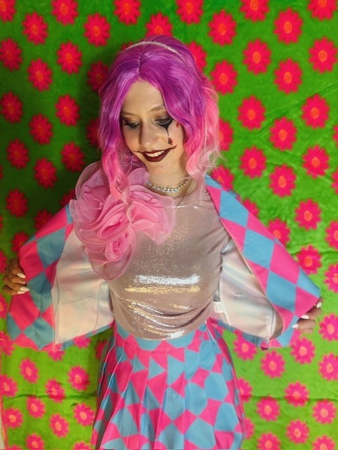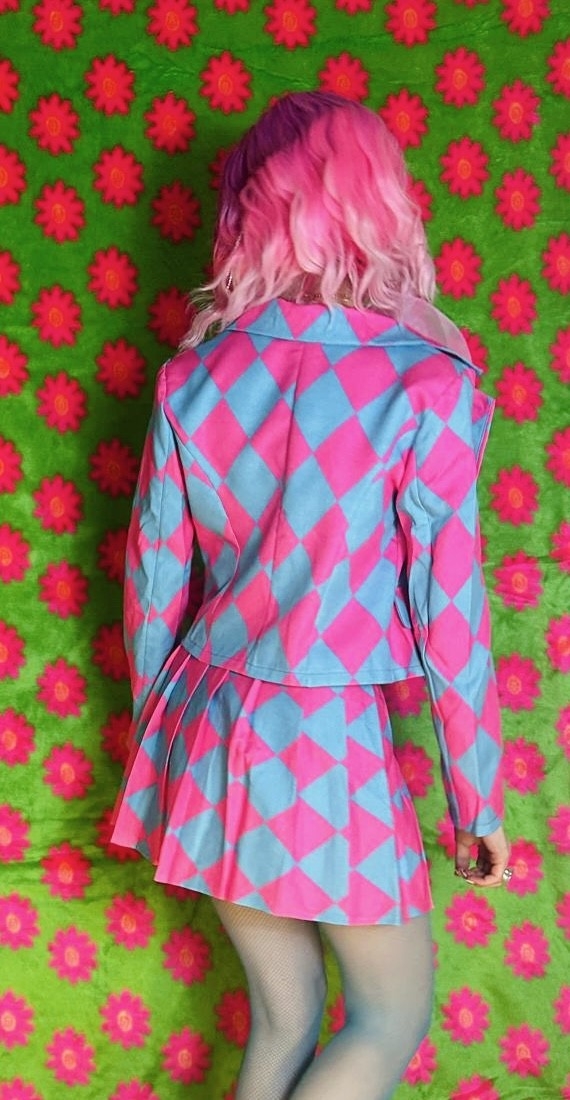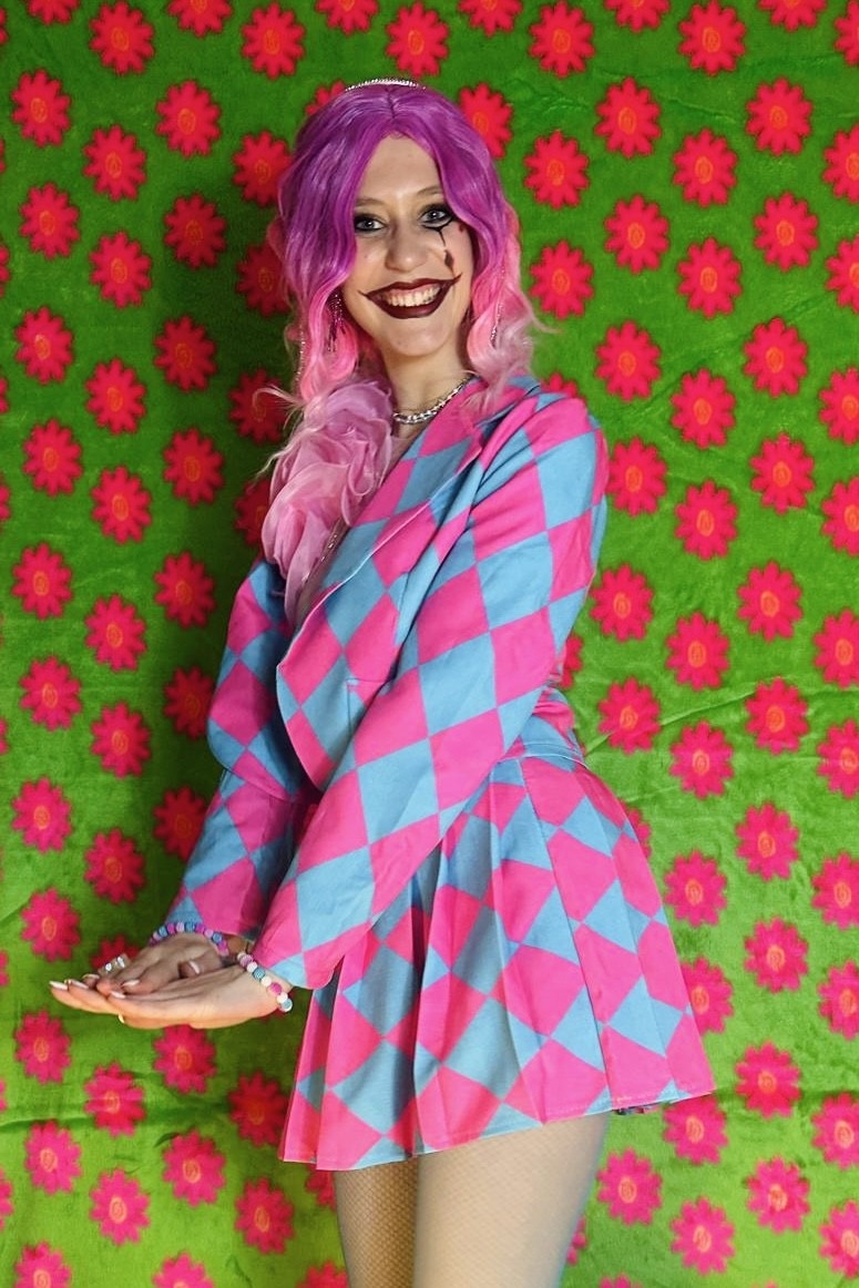 Maak je klaar om te stralen tijdens carnaval, themafeesten of verkleedpartijen met de Set Clownie roze en blauw van Insta Girl! Dit speelse pakje bestaat uit een kort plooirokje en een kort jasje, ontworpen om je een vrolijke, clownsachtige uitstraling te geven. Het vrolijke roze en blauwe geruite patroon zorgt voor een opvallende en feestelijke look, waardoor je gegarandeerd de aandacht trekt op elk feest.