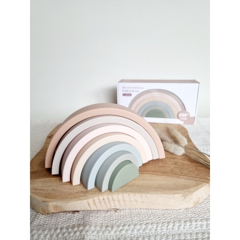Stapelen kan nu ook met onze mooie foodgrade siliconen regenboog! De zachte tinten passen bij elk kindje. Laat ze ontdekken en stapelen met de flexibele siliconen boogjes. De boogjes zorgen door het erop bijten ook voor pijnverlichting bij doorkomende tandjes. Perfect als cadeau!