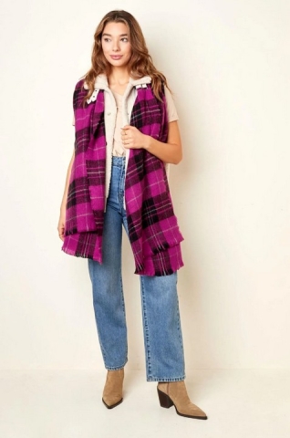 Superleuke, roze sjaal met zwarte ruitjes die je perfect kunt combineren met een warme muts en handschoenen voor een winterse look! Hij is gemaakt van acryl, een zachte stof die niet kriebelt, maar wel genoeg warmte geeft. Door zijn afmeting van 200cm x 75cm valt hij heerlijk groot en kan je hem op allerlei manieren dragen.