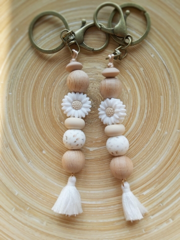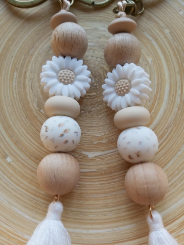 Mooie tas/sleutelhanger met geliefde bloem en exclusieve kralen.