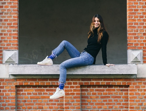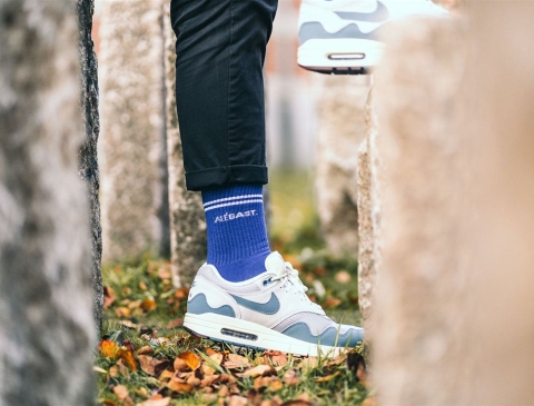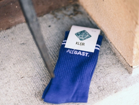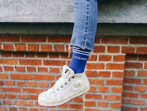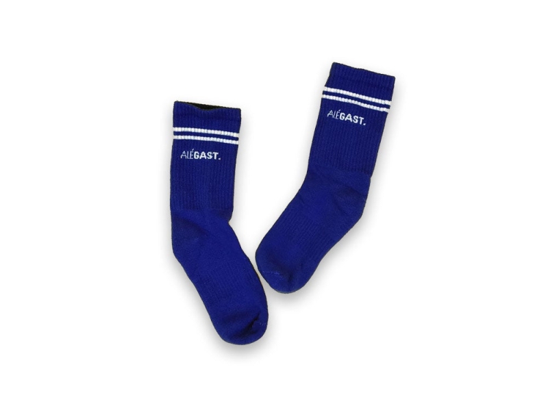 Comfortabele blauwe sokken met opschrift ALÉGAST. voor mannen en vrouwen. De kousen hebben een normale pasvorm met verdikking aan de zool voor extra comfort. Als cadeau of gewoon voor jezelf. Recht uit Antwerpen. Met trots voor het dialect.