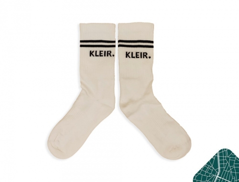Comfortabele witte sokken met opschrift KLEIR. voor mannen en vrouwen. De kousen hebben een normale pasvorm met verdikking aan de zool voor extra comfort. Als cadeau of gewoon voor jezelf. Recht uit Antwerpen. Met trots voor het dialect.
