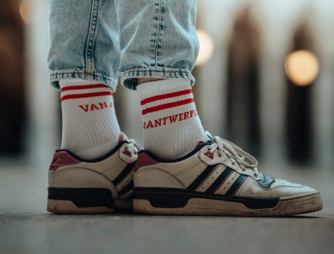 3 paar sokken* met opschrift "Van Antwerpen" in het typische GVA-lettertype. Als cadeau of gewoon voor jezelf. Recht uit Antwerpen.
