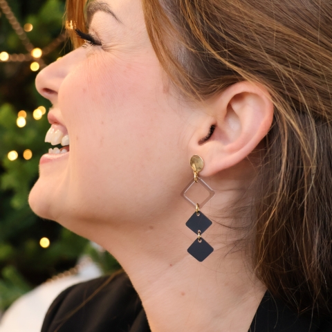 Totale lengte: 6,2 cm Totale breedte: 2 cm Materiaal: Gold plated, nikkelvrije messing, acryl
