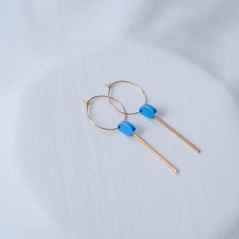 Totale lengte: 6,7 cm Totale breedte: 2,5 cm Materiaal: Gold plated, nikkelvrije messing, acryl