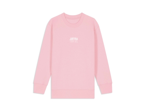 Roze sweater met opschrift JUFFRA TOERTJES. voor kinderen. Als cadeau of gewoon voor jezelf. Recht uit Antwerpen. Met trots voor het dialect.