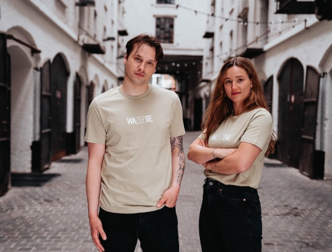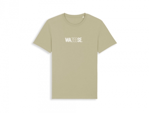 T-shirt in de kleur sage met opschrift WAZEESE. voor volwassenen. Als cadeau of gewoon voor jezelf. Recht uit Antwerpen. Met trots voor het dialect.