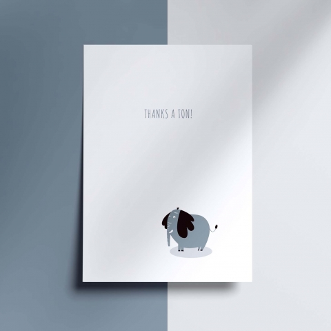 Wie ga je verrassen met een leuke bedankkaart? Wie heeft er iets voor je gedaan, wie staat er altijd voor je klaar? Bij wie heb je een gezellig etentje gehad? De achterzijde is blanco, dus ideaal om je eigen tekst op te noteren. Formaat: A6 (10,5 x 14,8 cm) Materiaal: Gmund 300gr is gemaakt van 100% katoen voor een buitengewone zachtheid en haptische sensatie - incl enveloppe Palmpapier Biotop