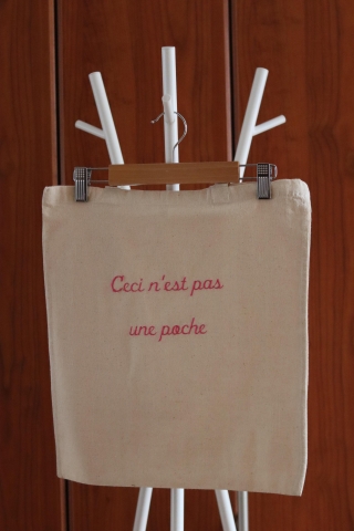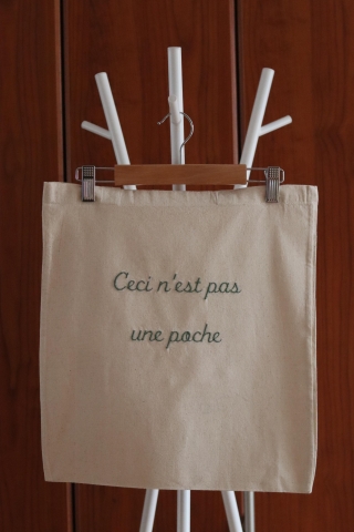 De tote bags mogen niet in de wasmachine. Is ze vuil en wil je ze terug proper krijgen? Maak de vlek een beetje nat en wrijf de vlek in met een natuurlijk wasmiddel zoals ossengalzeep. Laat even intrekken en spoel uit. Zitten er wat kreuken in die je eruit wil strijken? Dat kan, maar je strijkt best de achterkant. Als je toch de voorkant wil strijken, leg je er best een doek over zodat je niet rechtstreeks op het borduursel strijkt.