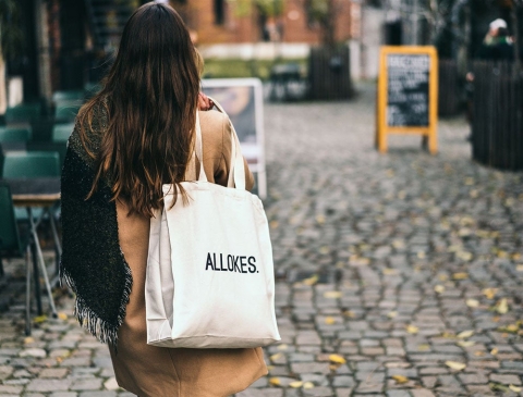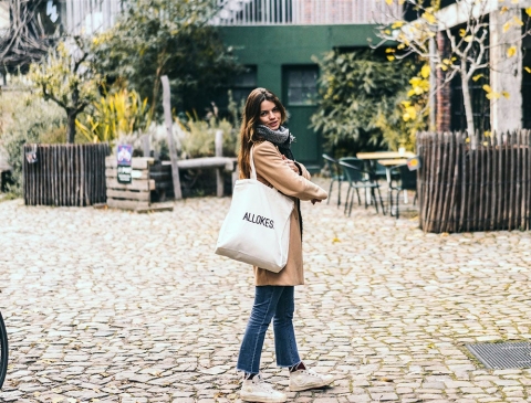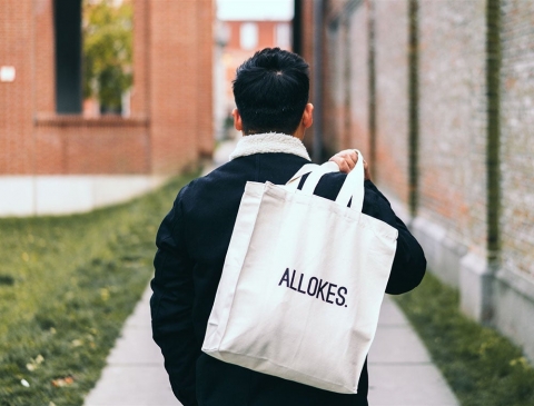 Stevige linnen zak met opschrift ALLOKES. aan de ene zijde en KLEIR. aan de andere kant.