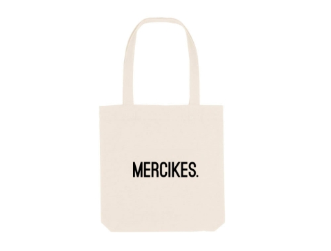 Stevige linnen zak met opschrift MERCIKES. aan de ene kant en het KLEIR. logo aan de andere kant.
