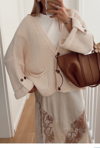 Vest crème Holly is een oversized vest van Schilo-Jolie uit Parijs. De vest heeft brede mouwen met 2 knopjes aan de manchetten en sluit eveneens met 3 knoppen. Een heerlijke vest voor overaan.