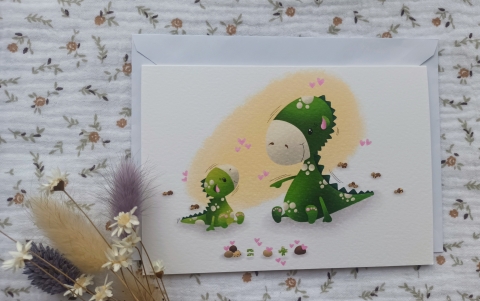 Formaat postkaarten: A6 (148mm x 105mm) Inhoud: 1 gevouwen kaart, 1 omslag en 1 sticker aan de hand van de wenskaart.
