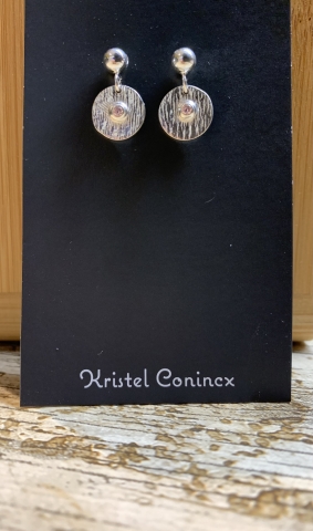 Mooie zilveren oorbellen met knopjes en lila zirconia